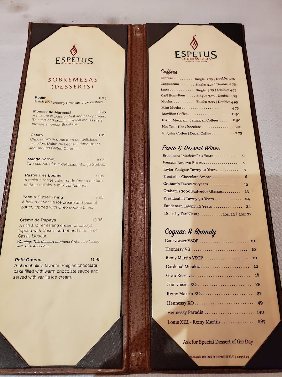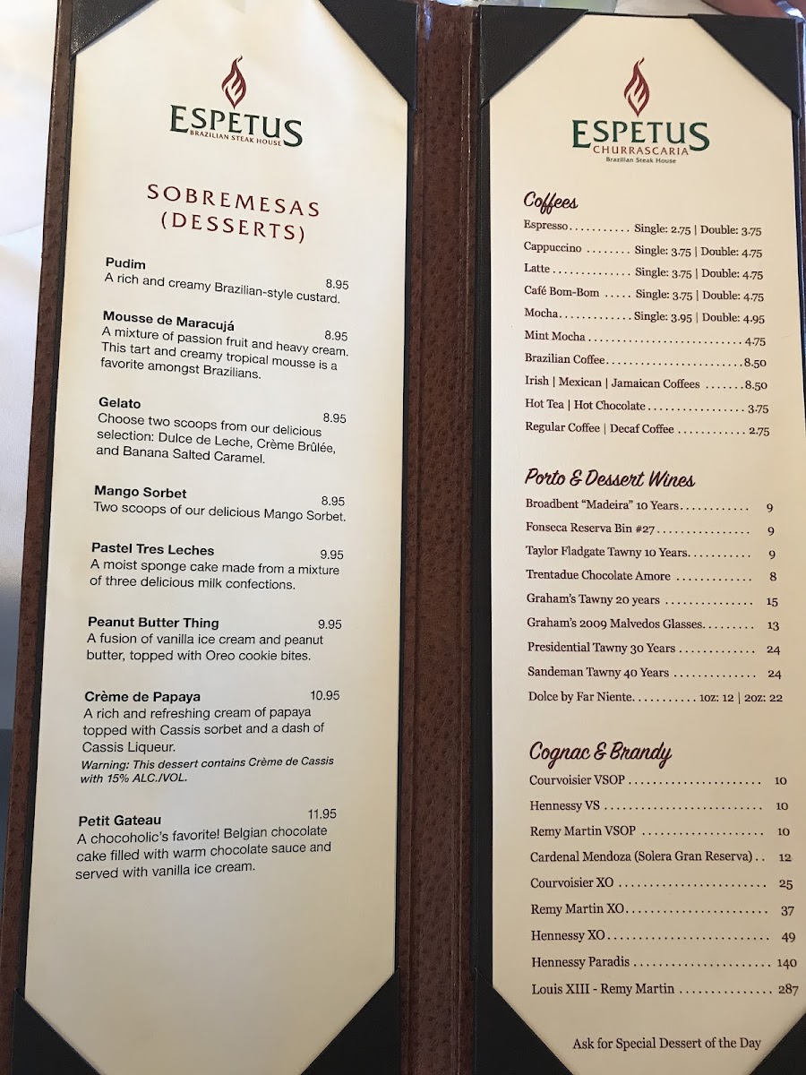 Espetus Churrascaria Brazilian Steakhouse Menu